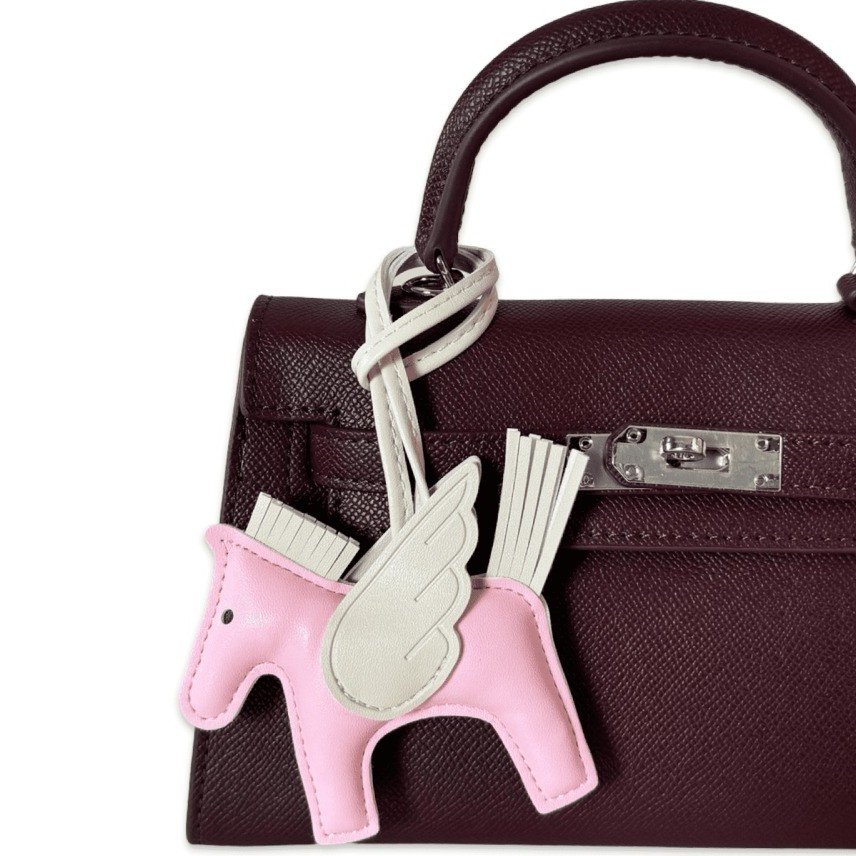 A Cute Genuine Leather Pendent with the shape of Greek Angel Pegasus Could be used as a accessory for your handbag or keychain.