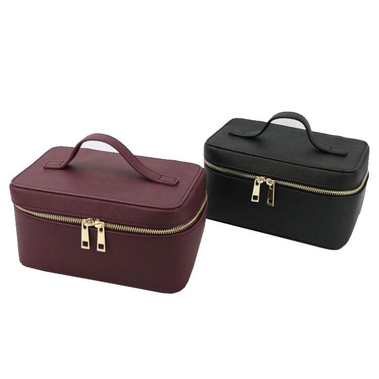 The Breeq vanity case is an exquisite organizational companion, meticulously crafted from supple cowhide genuine leather with gold-tone hardware accents. Its compact rectangular silhouette offers optimal storage while maintaining an elegant profile that transitions seamlessly from vanity to travel. The structured design features a secure top-zip closure and comfortable leather handle, making it both practical and stylish. Available in a curated palette of sophisticated colors including blush pink, forest green, burgundy, classic black, and nude, each piece can be personalized with custom initial embossing for a truly bespoke touch.