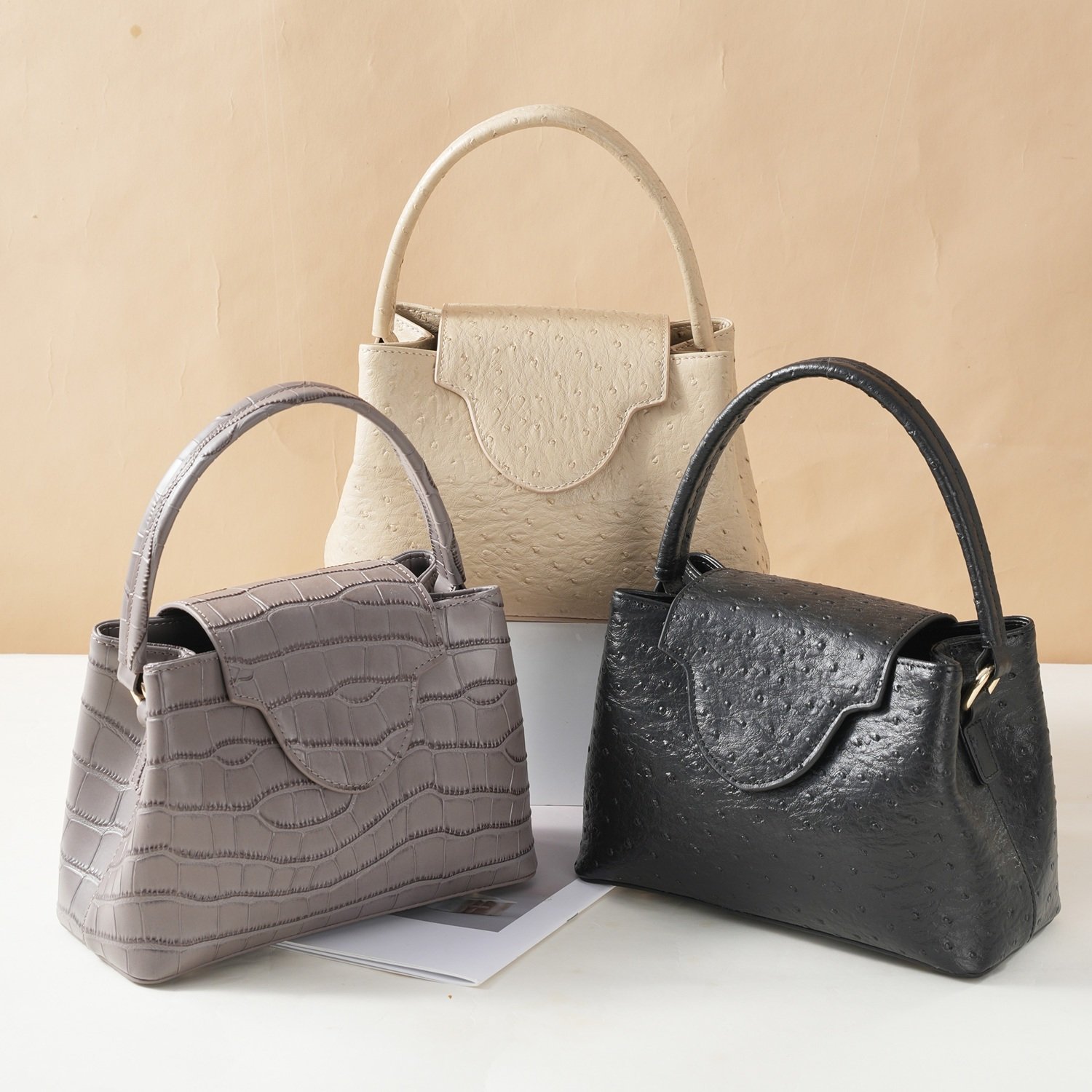 Textured finishes: Ostrich-inspired Beige & Black, Croc-embossed Grey