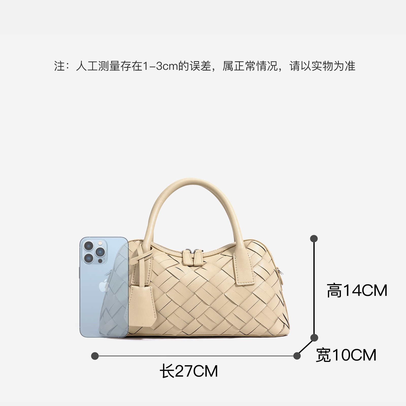 Stella is a beautifully balanced handbag that combines woven detailing with a clean, structured form. Its compact proportions make it ideal for daily essentials, while the woven exterior adds depth, character, and a subtle statement.